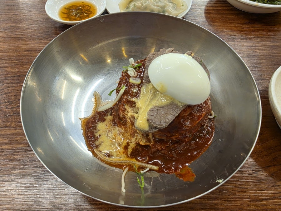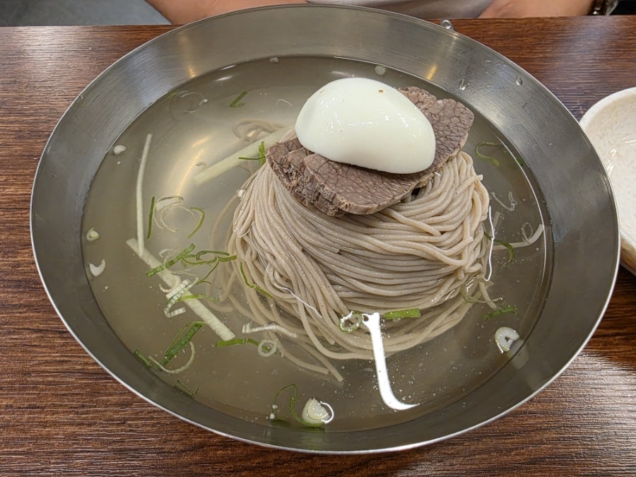 맑고 시원한 육수에 담백한 면이 어우러져 깊은 맛을 냈던 평양냉면입니다. 육향이 진하면서도 깔끔해서 자꾸만 손이 가는 맛이었어요.