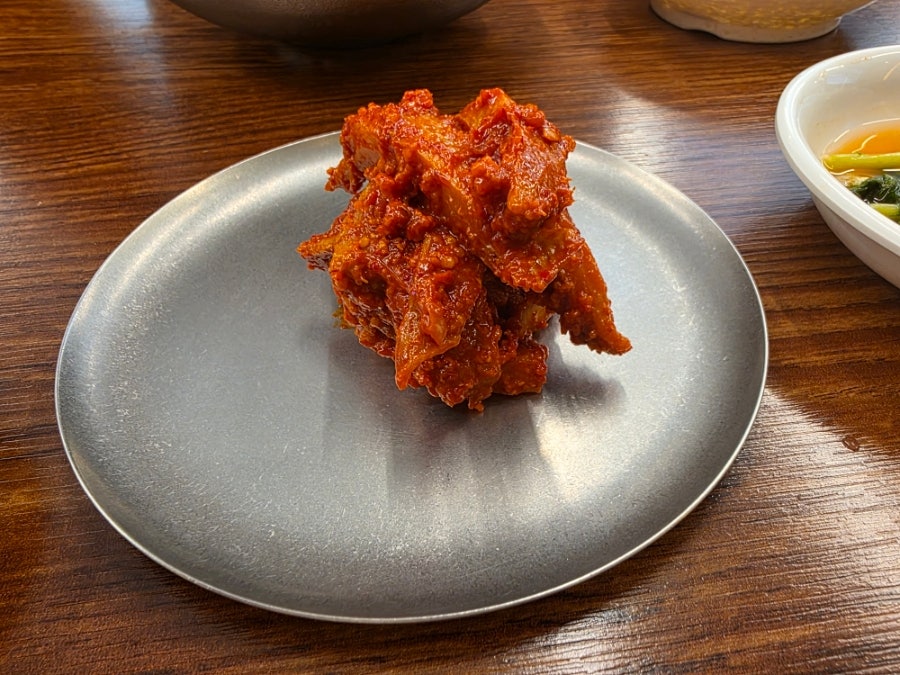 기본 반찬으로 나온 열무김치! 적당히 익어서 시원하고 아삭한 맛이 좋았어요. 냉면과도 잘 어울렸습니다.