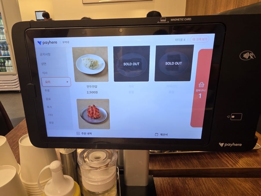 만두 한 알은 2,500원이었고, 제가 방문했을 때는 제육과 돼지수육은 이미 품절 상태였습니다. 역시 인기 메뉴는 빠르게 소진되네요.