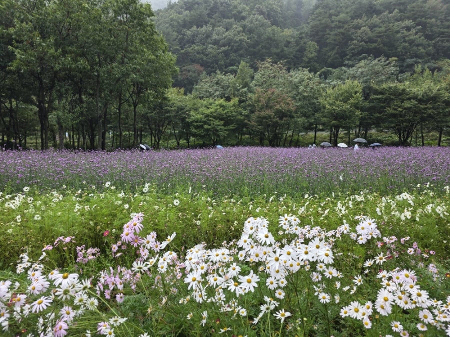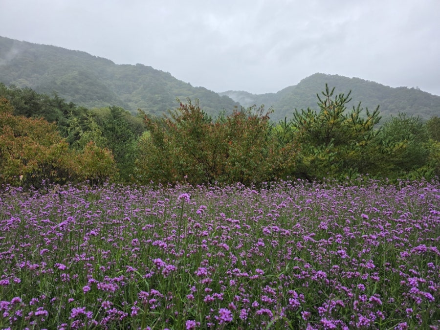 비가 오는 날의 버베나 꽃밭은 더욱 몽환적인 느낌을 줬어요. 신비로운 분위기 속에서 걷는 것만으로도 힐링이 되었어요.