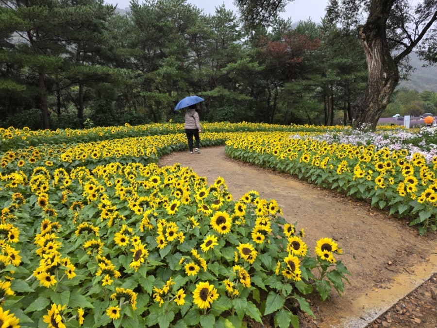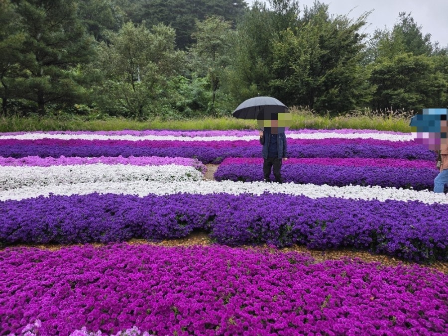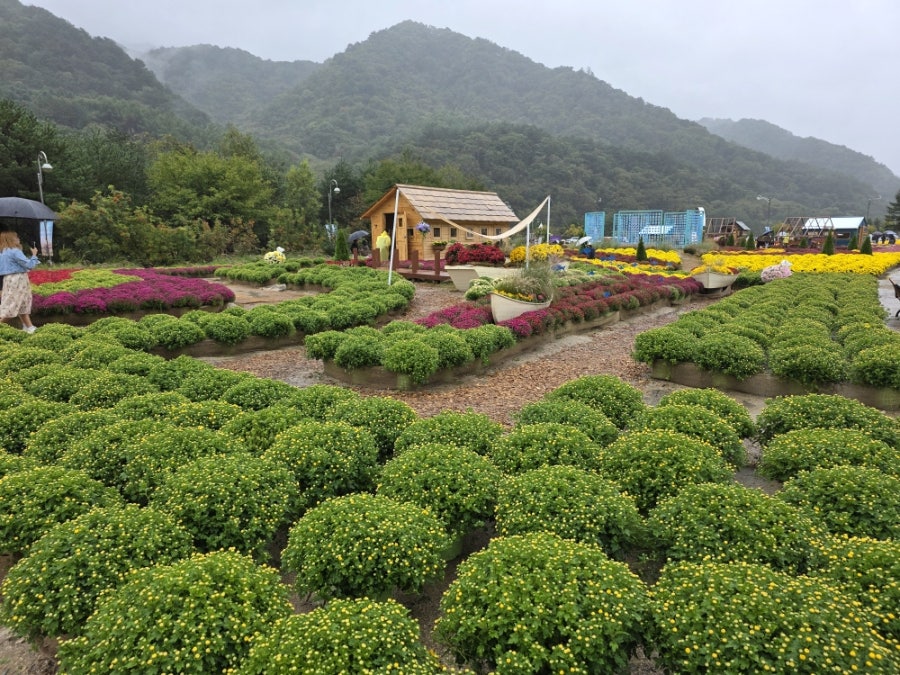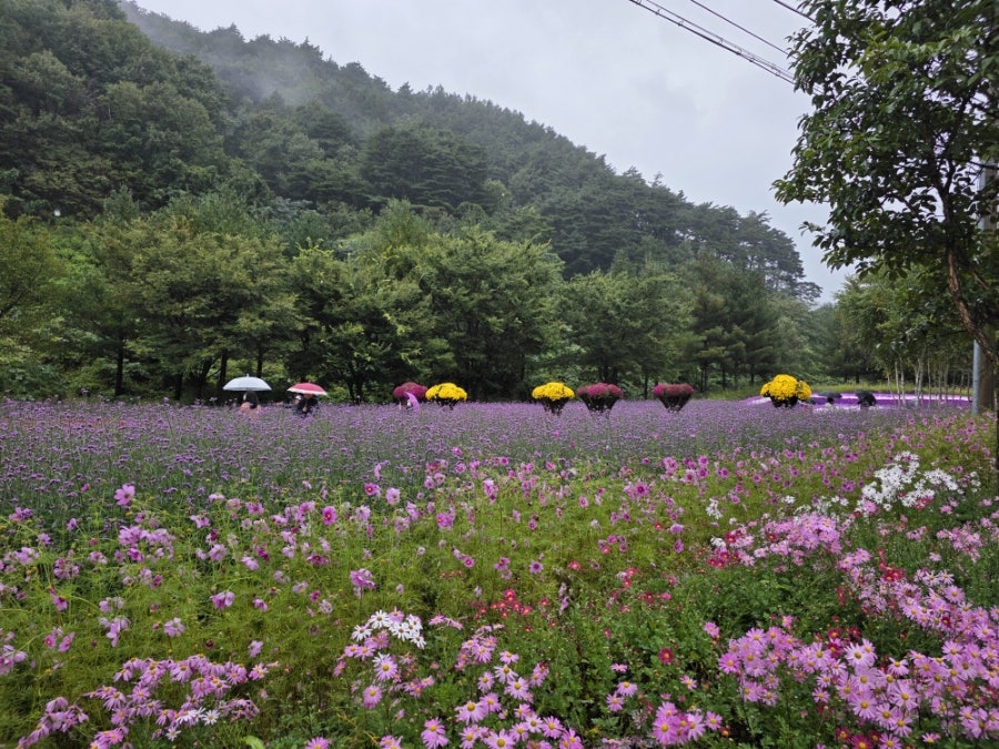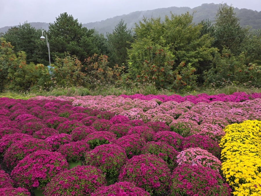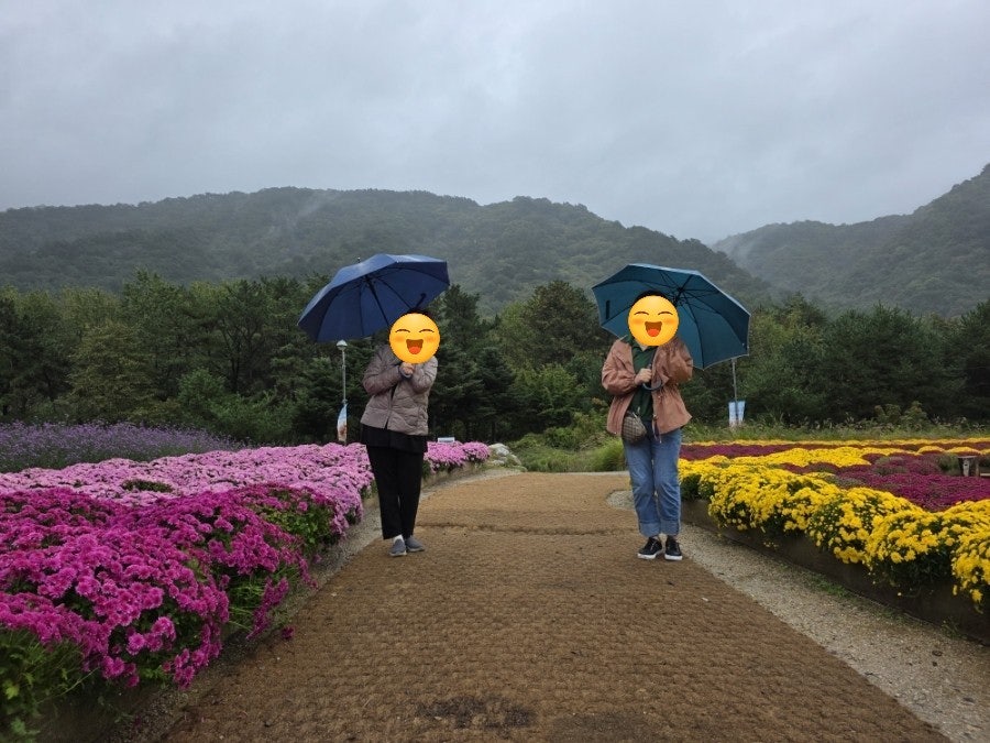 비 내리는 날씨였지만, 사랑하는 사람과 함께 예쁜 꽃을 보며 즐거운 시간을 보냈어요. 알록달록한 국화밭이 정말 아름다웠어요.