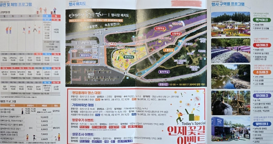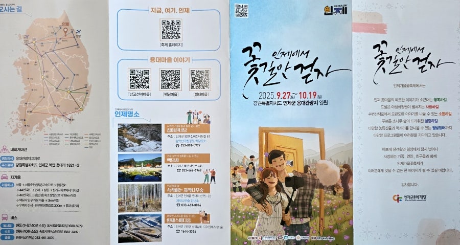 축제 리플릿을 받아봤어요. 인제 명소와 축제장 안내가 잘 정리되어 있었어요.