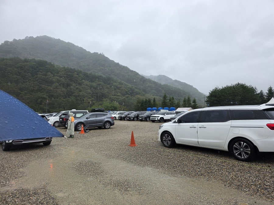 비가 오는 날임에도 불구하고 주차장에 차가 가득했어요. 그만큼 많은 사람들이 축제를 즐기러 왔다는 걸 알 수 있었어요.