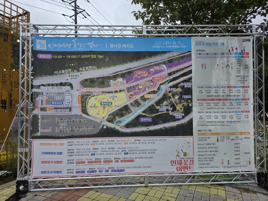 2025년 10월 6일, 인제 가을꽃축제 입구에 도착했어요. 비가 살짝 내리는 날씨라 운치 있었어요.