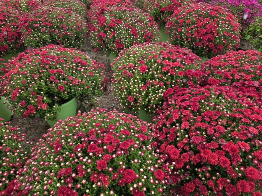꽃잎이 빽빽하게 모인 빨간 국화가 정말 화려했어요. 초록색과 빨간색의 조화가 예뻤어요.