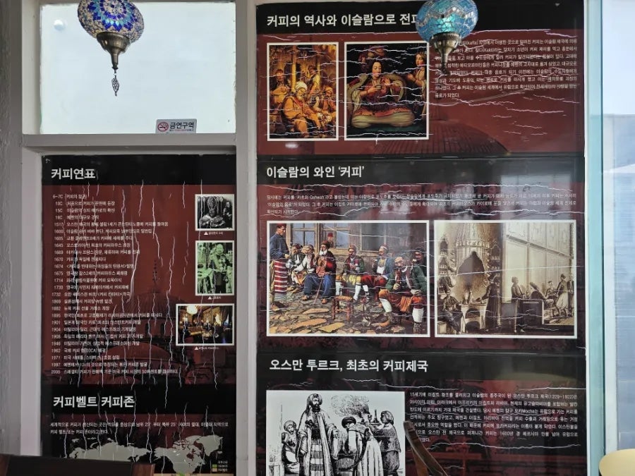 벽에 걸린 사진과 설명으로 커피의 역사를 배울 수 있었어요. 커피가 단순한 음료가 아니라 오랜 역사를 가진 문화라는 것을 알게 되었어요.