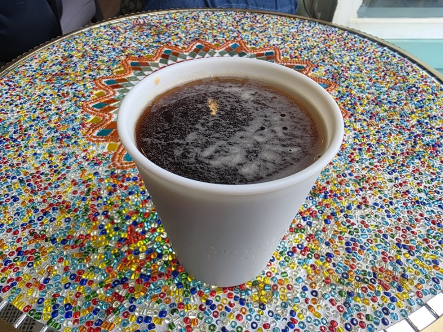 우리가 앉아있던 테이블이에요. 작은 구슬과 거울 조각으로 섬세하게 장식된 터키식 모자이크 테이블이었어요. 알록달록한 색감이 화려하면서도 아기자기해서 눈길을 끌었어요. 커피를 마시면서 아름다운 테이블을 감상하는 것도 또 다른 재미였어요.