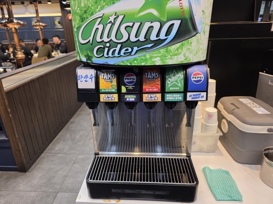 고기를 먹을 때 빠질 수 없는 탄산음료도 종류별로 준비되어 있었어요. 시원한 탄산이 고기의 느끼함을 싹 잡아줘서 더 맛있게 즐길 수 있었답니다. 탄산음료 외에도 다양한 음료들이 있어서 좋았어요.