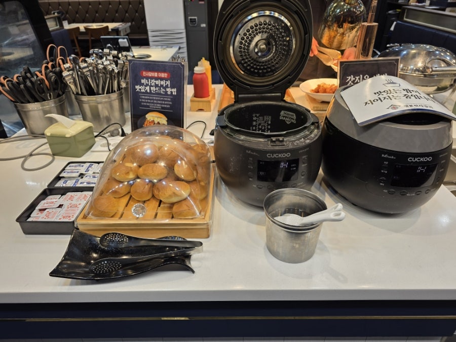 고기뿐만 아니라 샐러드바에는 아이들이 좋아하는 메뉴도 많았어요. 바삭한 튀김과 떡볶이 등이 있어서 고기를 기다리는 동안에도 지루할 틈이 없었답니다. 호불호 없이 모두가 만족할 만한 메뉴 구성이었어요.