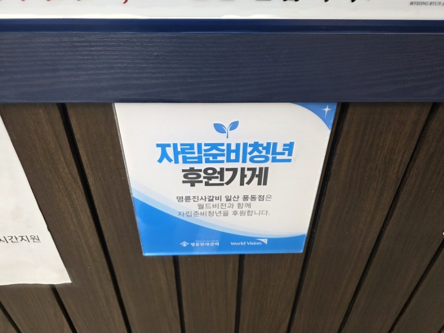 명륜진사갈비는 '착한프랜차이즈'로 다양한 사회 공헌 활동을 하고 있었어요. 매장 한쪽에 월드비전과 함께 자립준비청년들을 후원한다는 안내문이 있어서 더욱 감동받았어요. 맛있는 식사뿐만 아니라 좋은 일에 동참하는 기분이었답니다.