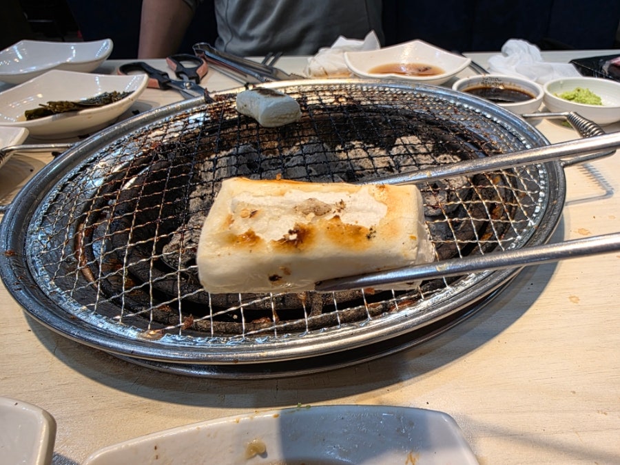 고기를 먹다가 숯불에 가래떡을 구워 먹었어요. 겉은 바삭하고 속은 쫄깃해서 별미였답니다. 고기만 먹기 아쉬울 때, 떡을 구워 먹으니 좋았어요.