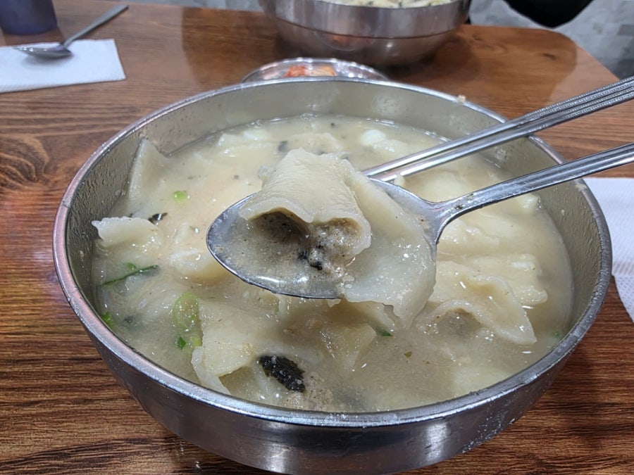I emptied every last drop. It is also a famous cost-effective restaurant to be able to taste such generous and delicious hand-pulled dough soup and sujebi at this price at Mangwon Market. It was a perfectly satisfying meal!