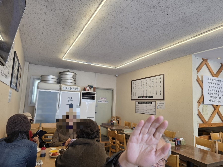 안으로 들어서면서 주방 쪽을 슬쩍 보니 만두를 찌는 통들이 가득 쌓여 있는 게 인상적이었어요. 오픈형 구조라 조리 과정이 살짝 보이는데, 위생적으로 관리되는 것 같아 안심되더라고요. 곳곳에 사장님의 손길이 닿은 정겨운 인테리어 소품들도 눈에 띄었고요. 따뜻하고 편안한 분위기 덕분에 마치 정성 가득한 집밥을 먹으러 온 것 같은 느낌을 받았답니다.